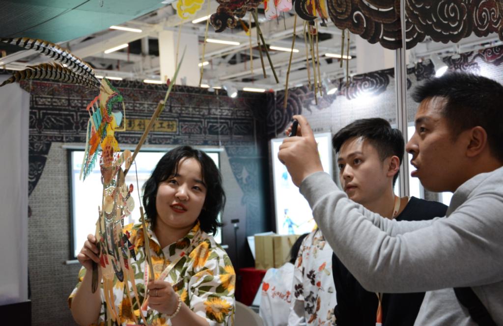 观众体验皮影操纵表演。王海涛 摄