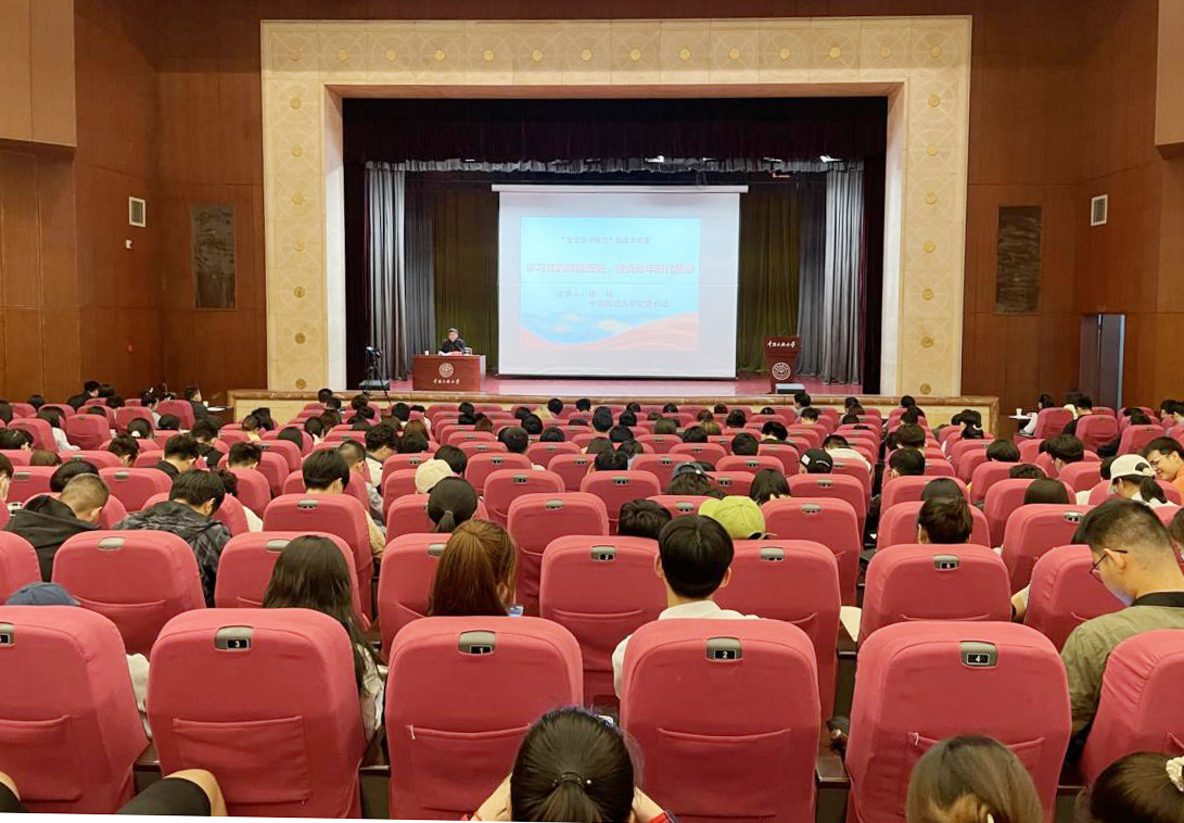 为深入贯彻习近平总书记重要讲话精神,持续用党的伟大历程、光荣传统和优良作风教育鼓舞青年学生,5月6日晚,校党委书记边境走进“党史学习教育”思政大课堂,以《学习党的辉煌历史,肩负青年时代使命》为题,在学术会堂为学校师生讲授专题思政课。