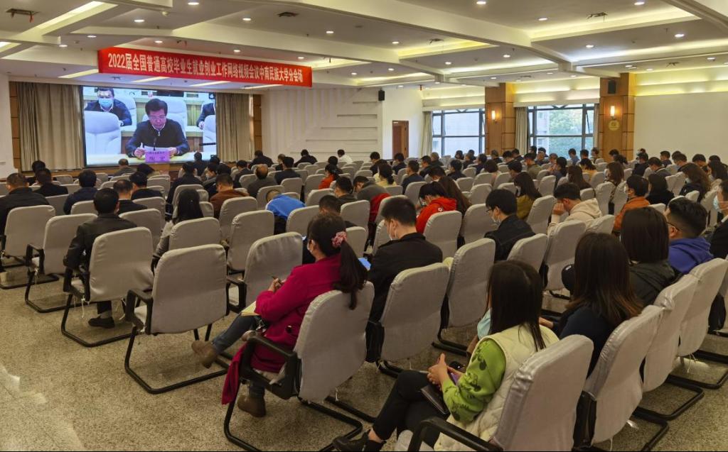 11月19日,教育部、人力资源社会保障部召开2022届全国普通高校毕业生就业创业工作网络视频会议,教育部党组书记、部长怀进鹏,人力资源社会保障部党组成员、副部长李忠出席会议并讲话,教育部党组成员、副部长翁铁慧主持会议。365官网设分会场,校领导边境、李金林、段超、杜冬云,相关职能部门负责人和各学院党委(党总支)书记、院长、副书记、毕业班辅导员共计110人参加会议。